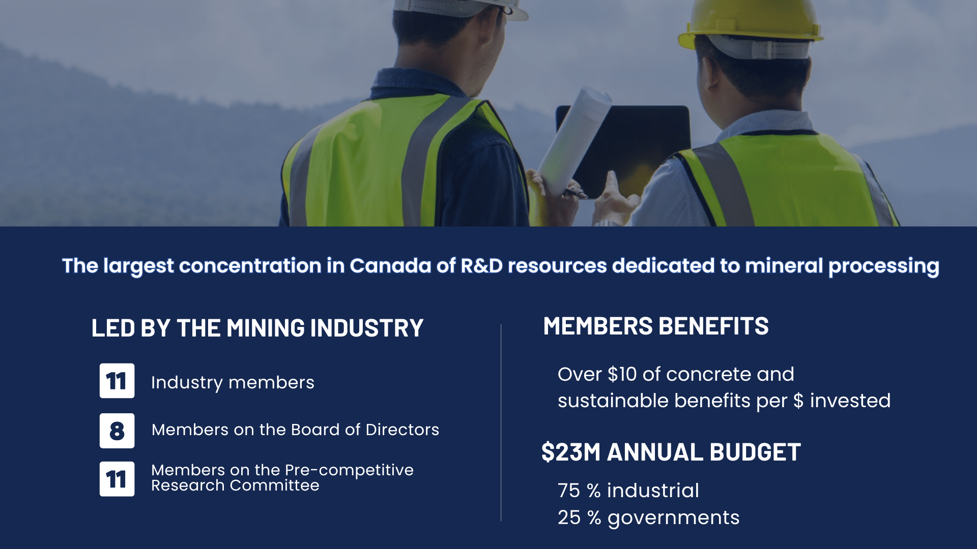 Create innovative solutions in mineral processing for the benefit of a sustainable mining industry, working closely with our members, our customers and our partners.